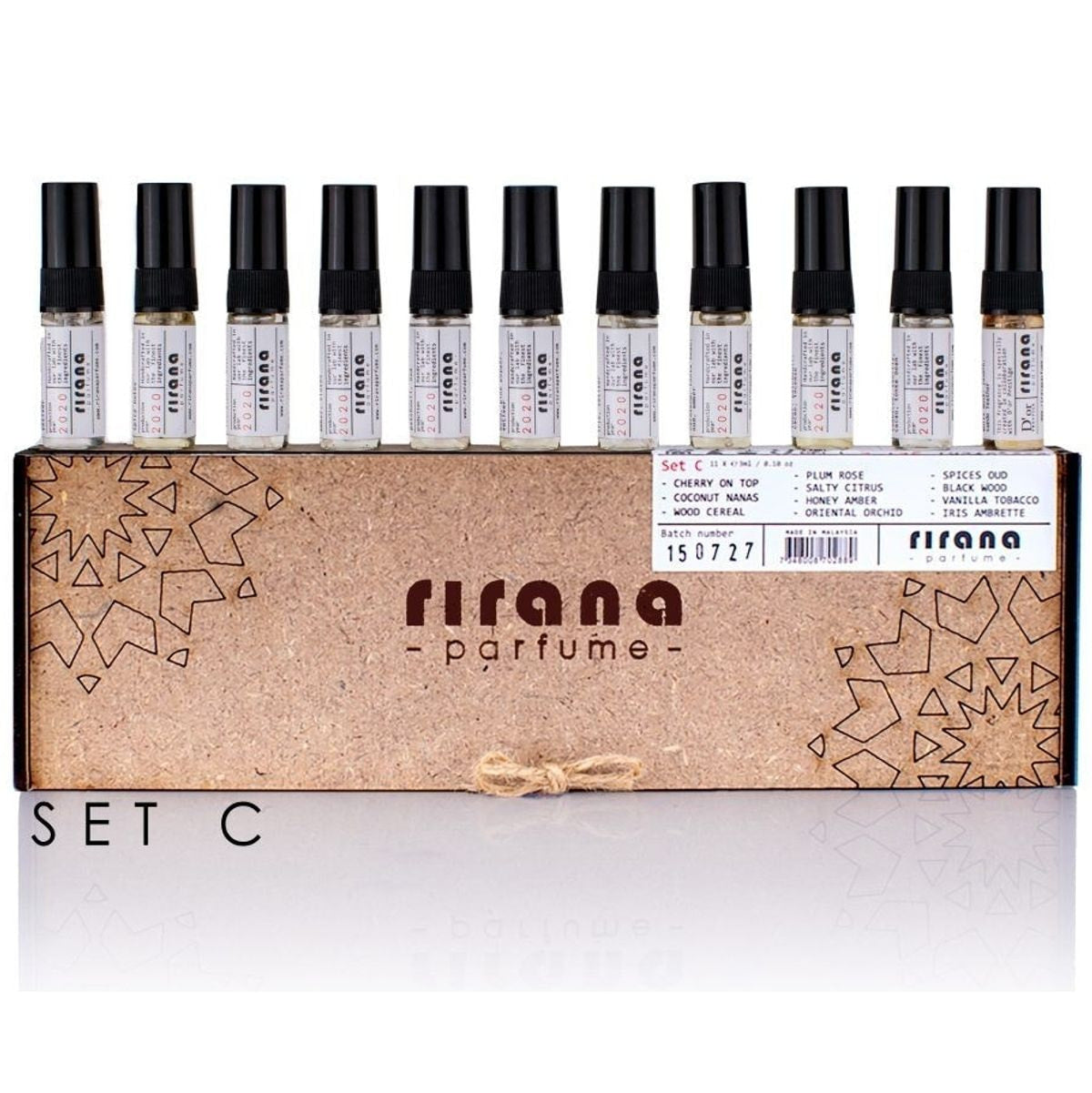 Das Discovery Set C von Rirana Parfume ist eine exklusive Duftkollektion, die in einem eleganten Holzschuber präsentiert wird. Jede der 11 enthaltenen 3 ml Sprayflakons ermöglicht es dir, die Vielfalt und Komplexität der Rirana-Düfte zu erleben. Mit einer Duftölkonzentration von 60–70 % übertrifft dieses Set die gängigen Extrait-de-Parfum-Standards und bietet eine langanhaltende Präsenz.